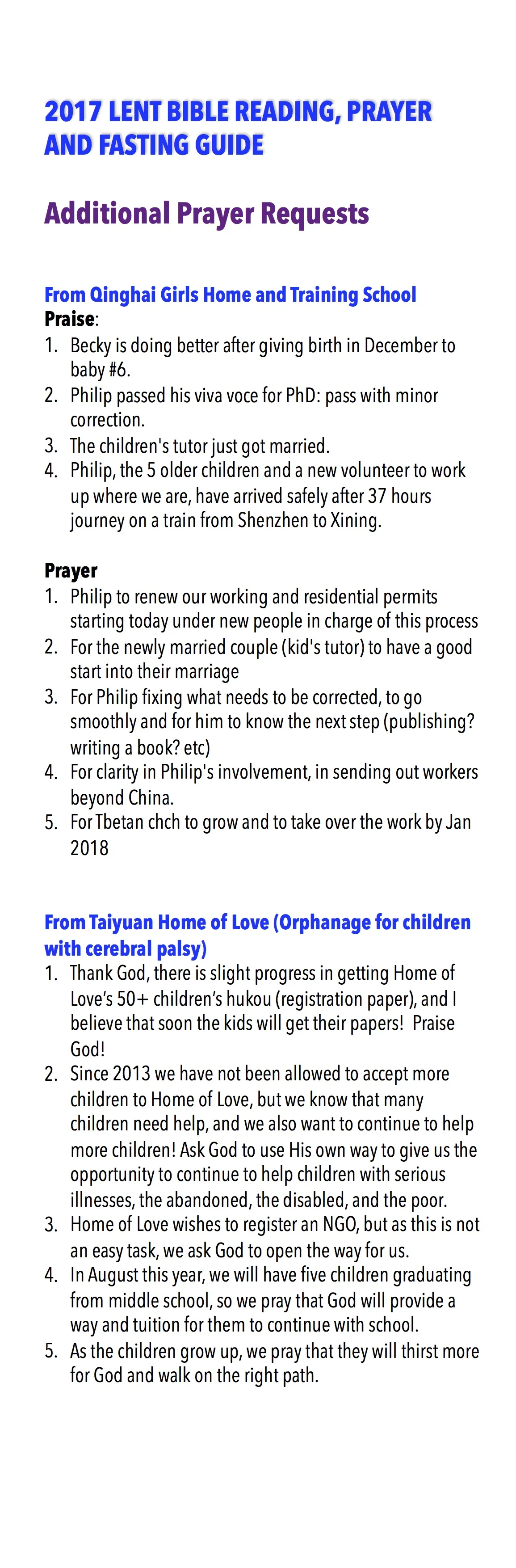 Note on Prayer Section: We have added prayer requests for each day from different organizations in China who serve the poor. Use these requests to pray for the poor and those who serve them.